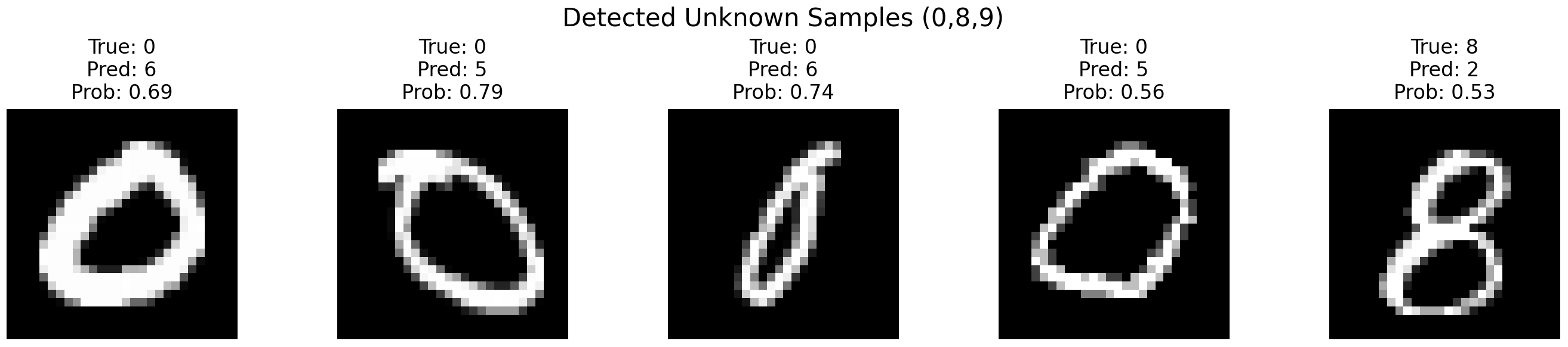 fig.suptitle("Detected Unknown Samples (0,8,9)", fontsize=15)
