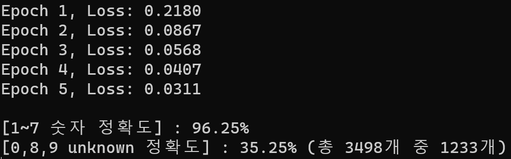 print(f"\n[1~7 숫자 정확도] : {100 * correct / total:.2f}%")