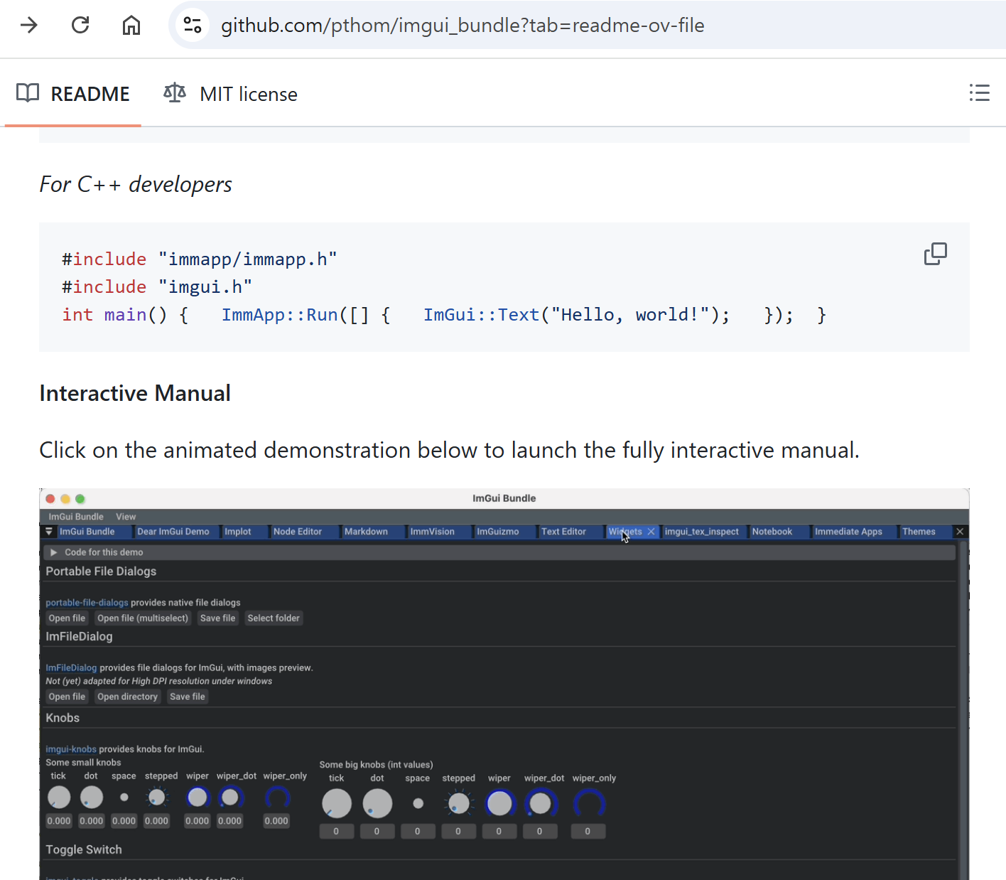 imgui_bundle 홈페이지에 보면 "Interactive Manual" 이라고 있다.