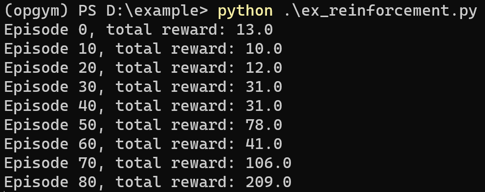 Episode가 늘어날 수록 더 높은 reward를 획득하는 것을 볼 수 있다.