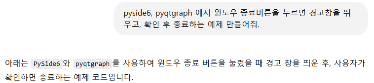 사실 원래 하려던 것은, 그래프를 그리고, 메인 윈도우를 종료할 때 종료여부를 다시 한번 확인하는 기능이었다. 그래서 처음에는 아래처럼 물어봤었다.