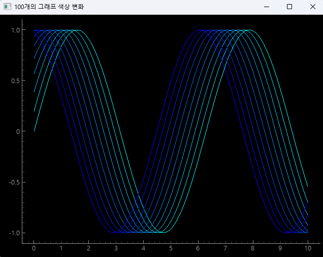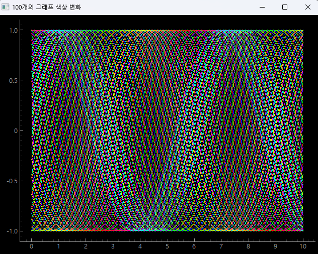 win.setWindowTitle("100개의 그래프 색상 변화")