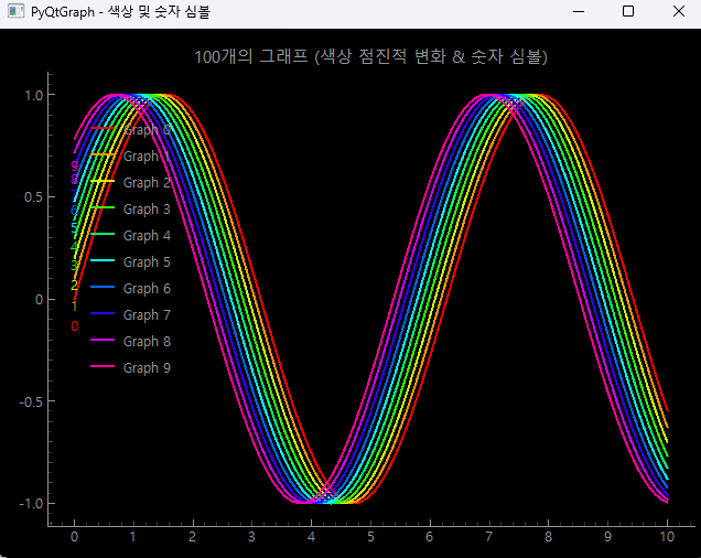 win.setWindowTitle('PyQtGraph - 색상 및 숫자 심볼')