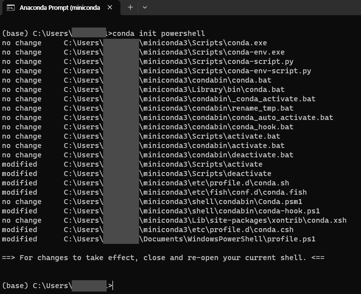 다음부터 powershell을 열때 conda 환경이 적용될 것이다.