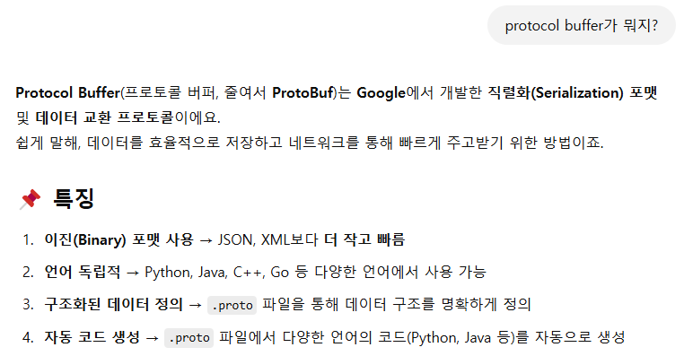 일단 protocol buffer 가 뭔지 쳇지피티에게 물어보자.