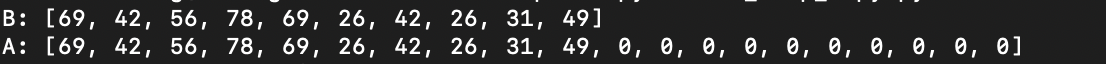 # 랜덤 값으로 채워진 리스트 B (길이 10)